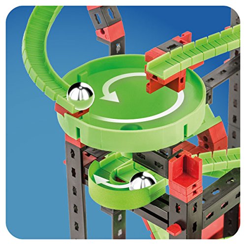 Lieferumfang:1 fischertechnik XS Motor 4 fischertechnik Highspeed Flexschiene 4 fischertechnik 90 Kurve 3 fischertechnik 180 Kurve 8 fischertechnik Kugel 8 fischertechnik Flexschiene 90 17 fischertechnik Flexschiene 180 1 fischertechnik Wechselweiche 1 fischertechnik Kreiseltrichter 1 fischertechnik Batteriehalter für 9V Block , Das Komplettset Dynamic L2 garantiert mit Action Modellen und den drei 180 Kurven noch mehr Spielspaß. Die vier Highspeed Flexschienen mit erhöhtem Seitenrand ermöglichen maximale Geschwindigkeit der Kugel in der Kurve! Rasant sausen die Kugeln über die mechanische Weiche in unterschiedliche Bahnkreisläufe. Sie schießen durch die Wechselweiche in Richtung Kreiseltrichter oder über eine Wippe die eine Kugel an der Stoppstelle freigibt. Die 180 Kurve ermöglicht jungen Architekten einen Richtungswechsel der Kugel auf engstem Raum. Über Looping und weitere Schikanen gelangt die Kugel wieder zur Aufnahmestelle des Aufzugs. Unten an der Aufnahmestelle angekommen werden die Kugeln über den mit einem XS Motor betriebenen Aufzug wieder nach ganz oben transportiert. Mit einer Streckenlänge von bis zu 4,50 m bieten die drei unterschiedlichen Actionparcours grenzenloses Kugelparcours Vergnügen. Die vier didaktischen Versuchsmodelle erklären nebenbei die Effekte der verschiedenen physikalischen Phänomene Beschleunigung, Massenträgheit, Kräftegleichgewicht, Energieerhaltungssatz, Impulssatz, Bewegungsgesetze. Auf dem eLearning Portal fischertechnik elearning.com finden sich spannende, didaktische Begleitinformationen und Videos zum Thema Physik. Lets roll ! 780 Bauteile die in 7 unterschiedliche Modelle konstruiert werden können. Geeignet für Kinder ab 9 Jahre 7 Modelle Enge 180 Kurven Highspeed Schienen mit erhöhtem Rand Mechanische Wechselweiche Spannungsversorgung: 9V Blockbatterie erforderlich Batterie nicht enthalten Ideale Ergänzungen: Alle Baukästen aus der Dynamic Linie SoundLights LED Set Accu Set oder Power Set Im Set enthalten: 1 fischertech